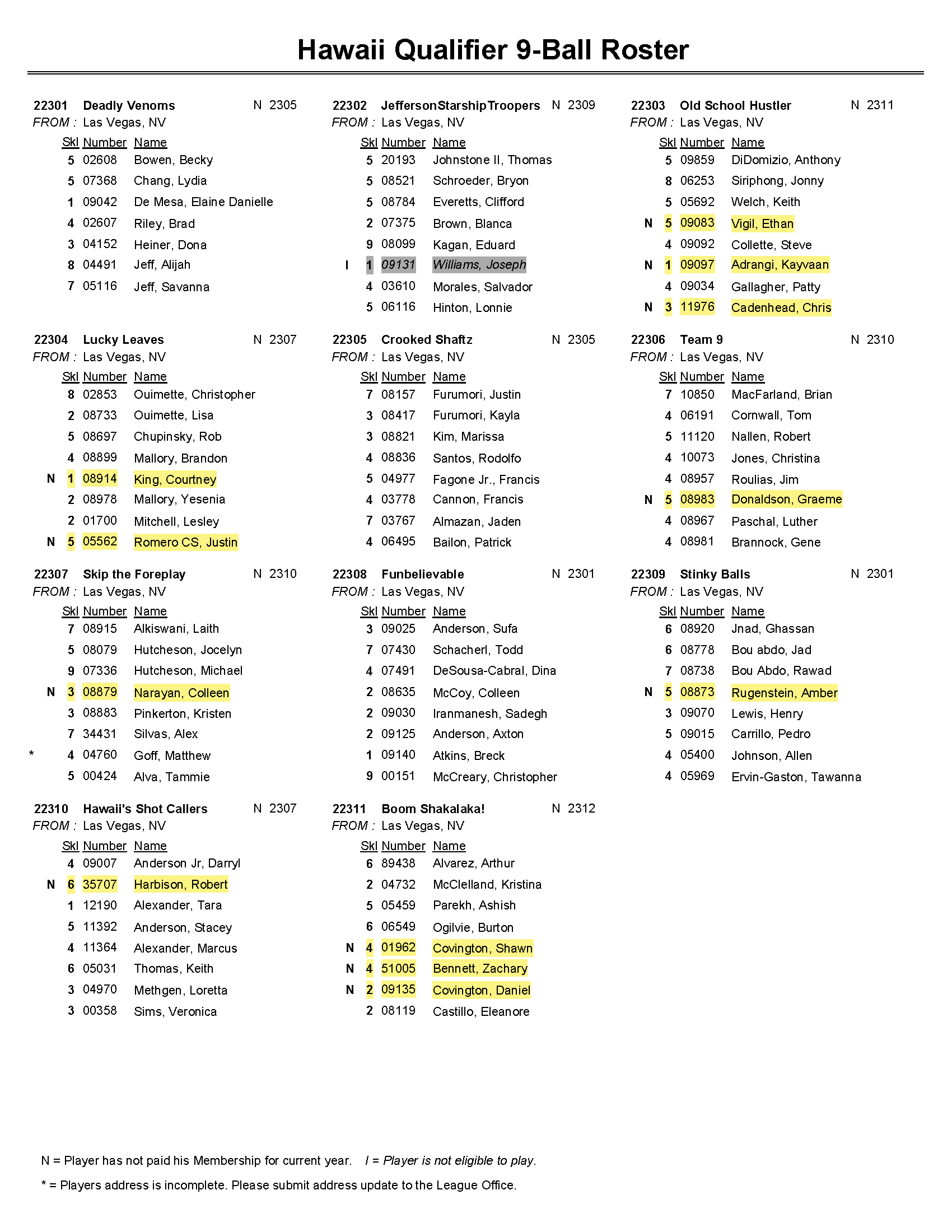 still need to take care of their memberships in order to be eligible to play. Please make sure this is handled as soon as possible so there are no issues at the tournament.